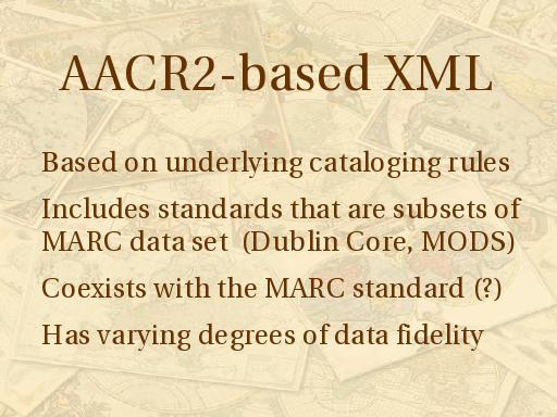 The second option Fiander mentions in his article is to create an XML schema based on the rules of AACR2.